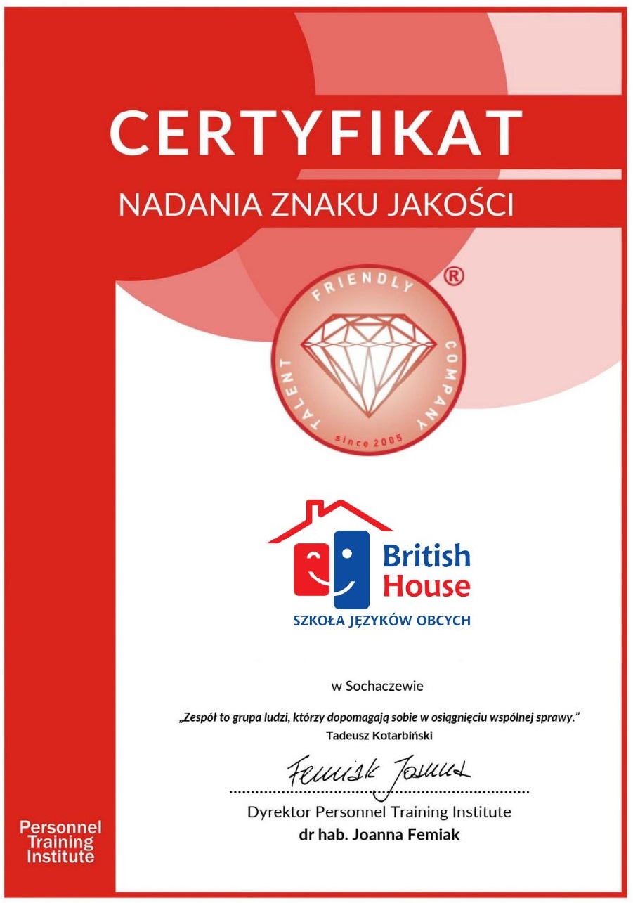 Głównym atutem kursów w British House jest możliwość codziennego kontaktu z językiem angielskim, co znacząco przekracza standardowe zajęcia odbywające się raz czy dwa razy w tygodniu. Oferujemy naszym kursantom 100% immersję w języku angielskim – wszystkie lekcje prowadzone są w tym języku, zarówno przez polskich lektorów, jak i native speakerów. To podejście zapewnia szybki postęp i głębokie zrozumienie języka.