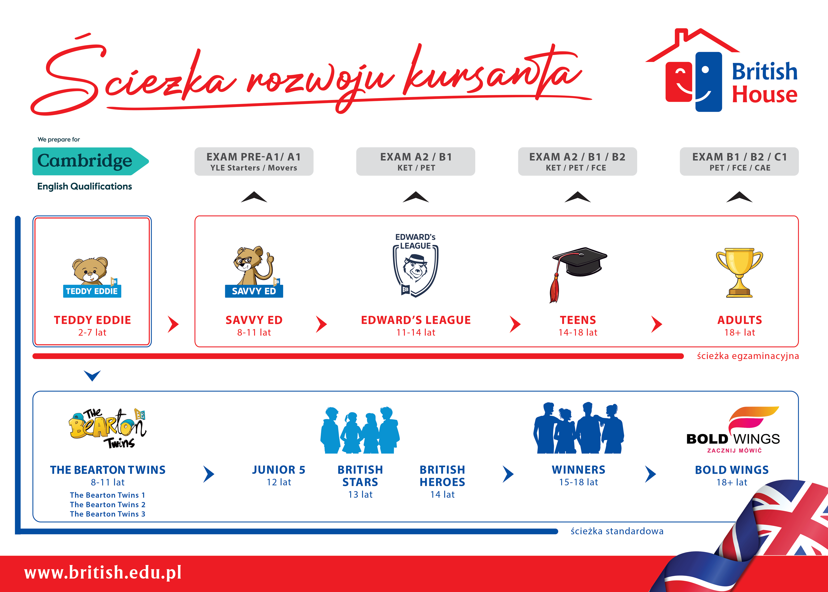 Licencjonowane metody nauczania, takie jak Teddy Eddie, Savvy Ed, Edward's League, Colorin Colorado, które są kolejnym filarem naszego sukcesu. Ponadto, przeprowadzamy egzaminy Cambridge bezpośrednio w naszej szkole, co stanowi wygodną i efektywną opcję dla naszych kursantów.